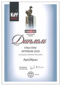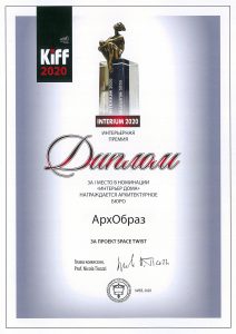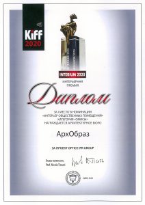 Ґран-прі. KIFF 2020 INTERIUM. For winning two nominations of the Interium 2020 competition. “Space twist” and “Office IPR Gproup”